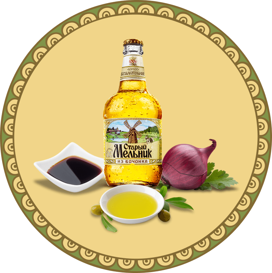 Подавать с бутылочкой «Старого Мельника из Бочонка Мягкое Безалкогольное»