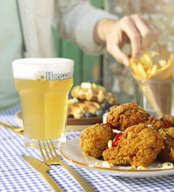 Мягкая обволакивающая текстура Hoegaarden прекрасно сочетается с хрустящей корочкой.