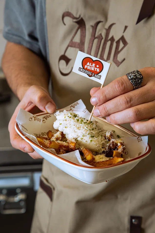 Underdog и ABBÉ переосмыслили подход к традиционной бельгийской гастрономии, а бренд-шеф Павел Косов воплотил меню в духе свойственной ему стритфуд-эстетики, подчеркнув идеальный дуэт картошки и эля. Каждый сет получил фирменный соус, разработанный на основе сортов ABBÉ Blonde или ABBÉ Brune.